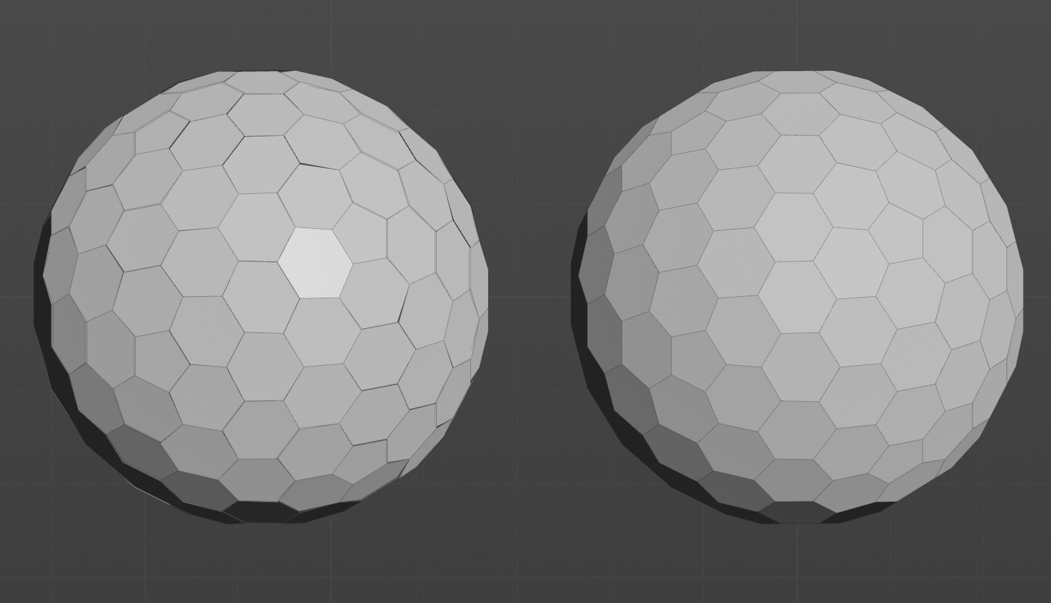 i know we’ve all moved on from the hex sphere conversation but i will say the planarization method sidefx is using in the facet sop is actually so un flattering. Im assuming its generating some kind of per face normal and then using the average position and then projecting wrt to that. but like there are so many better methods… For instance, using the local/local solve from: roipo.github.io/publication/poranne-2013-interactive/planarization.pdf