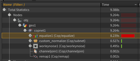 a while ago I thought it would be fun to try and optimize the “equalize” node. It’s not perfect since I don’t think cops allows image inputs of different sizes but it seems to run faster than the builtin “equalize” node by using a more parallel-friendly algorithm. Thought I’d drop that here in case anybody is interested