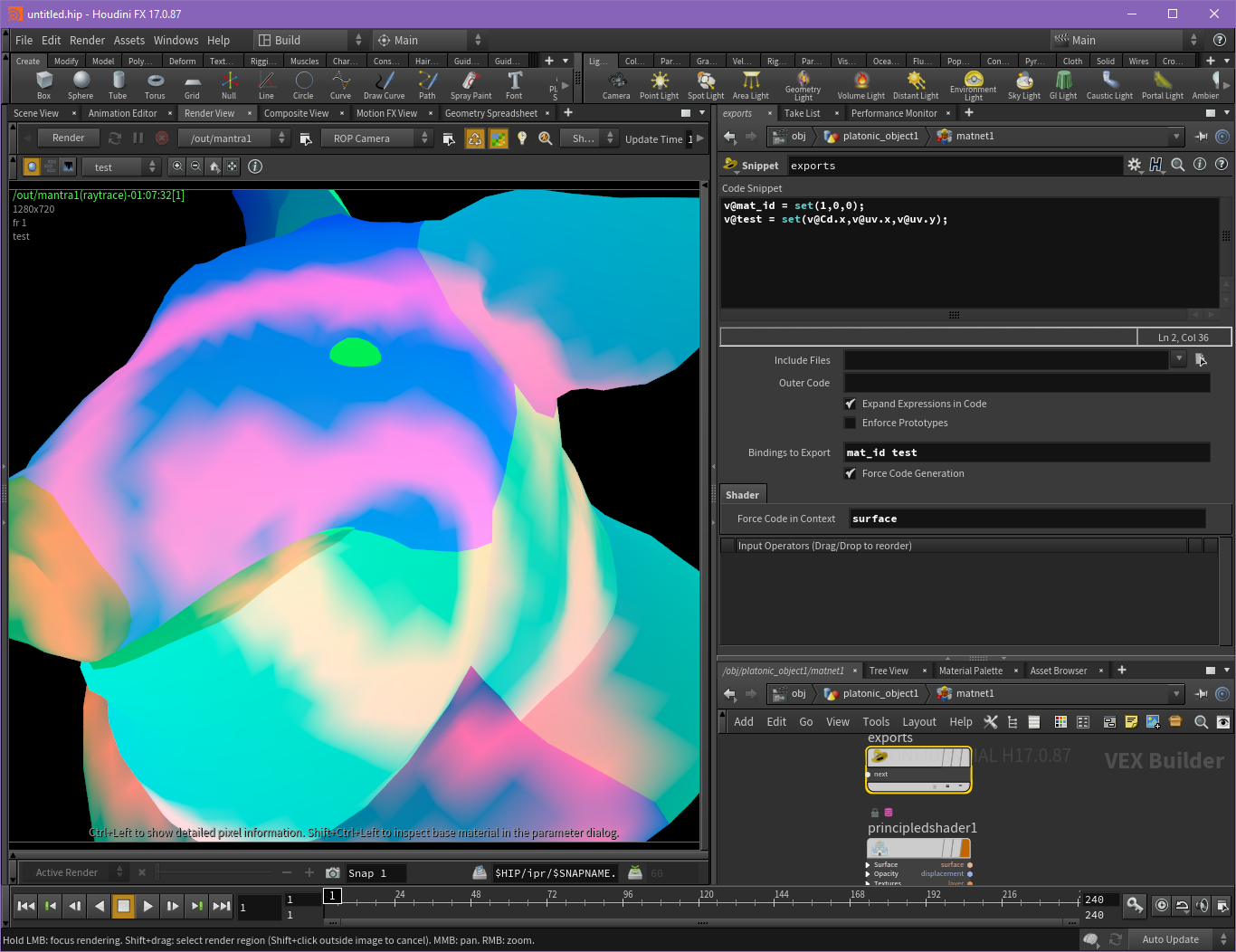 @matte @aswaab `Tiny little points will be hard to sample within a pixel and cause noise. If you put a floor under how small they can be in pixel space (and maybe compensate by lowering alpha etc) that might make it cleaner` there is a mantra property for exactly that, *vm_geofilterwidth*